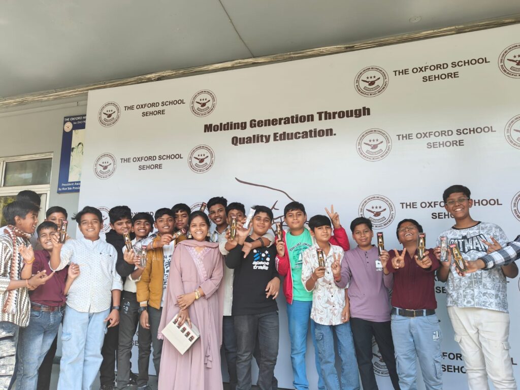 “Oxford School Students honored for outstanding performance at the State-level Junior Red Cross & Goodwill Camp, Guna, showcasing discipline, teamwork, and leadership skills.”